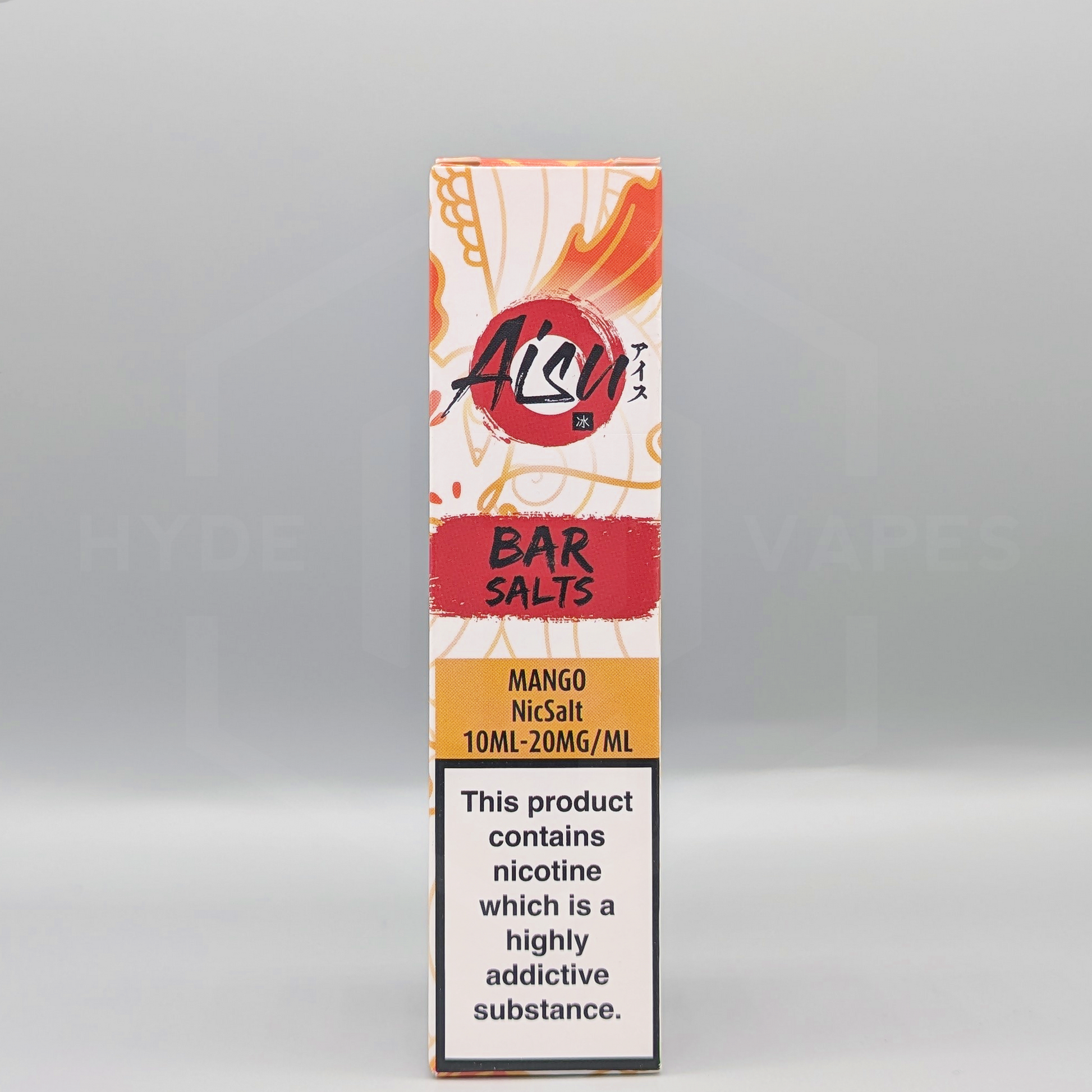 Aisu Mango uses salt nicotine and is available in 10ml bottles in either a 10mg or 20mg strength.