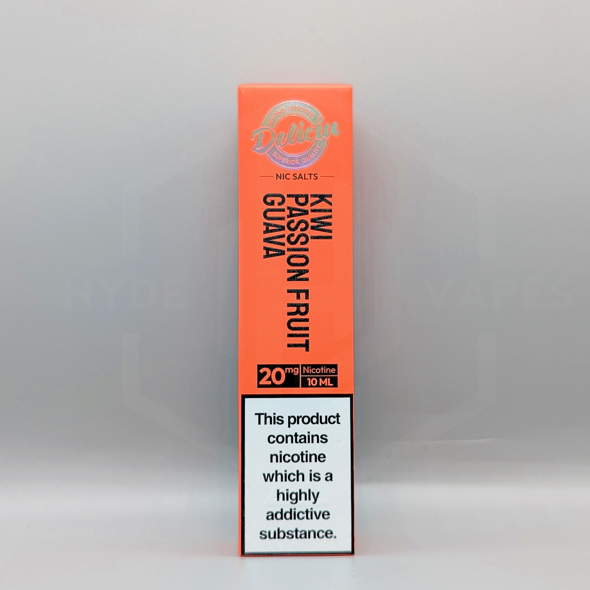 Deliciu - Kiwi Passion Fruit Guava uses salt nicotine and is available in 10ml bottles in 10mg or 20mg strength.